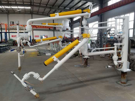 鶴管的安裝方法:發(fā)油臺與鶴管連接處配有相應的標準法蘭,并保證基礎法蘭牢固可靠,法蘭盤距地面高度為2.1~2.2米,鶴管倒裝時法蘭盤距地面高度為2.7~2.8米。安裝過程中,每個法蘭面必須輕清潔干凈,有密封槽的必須用黃油將O形圈裝好后再連接在每個銷軸轉動部分及彈簧平衡器安裝使用前必須涂潤滑機油。<了解詳情>